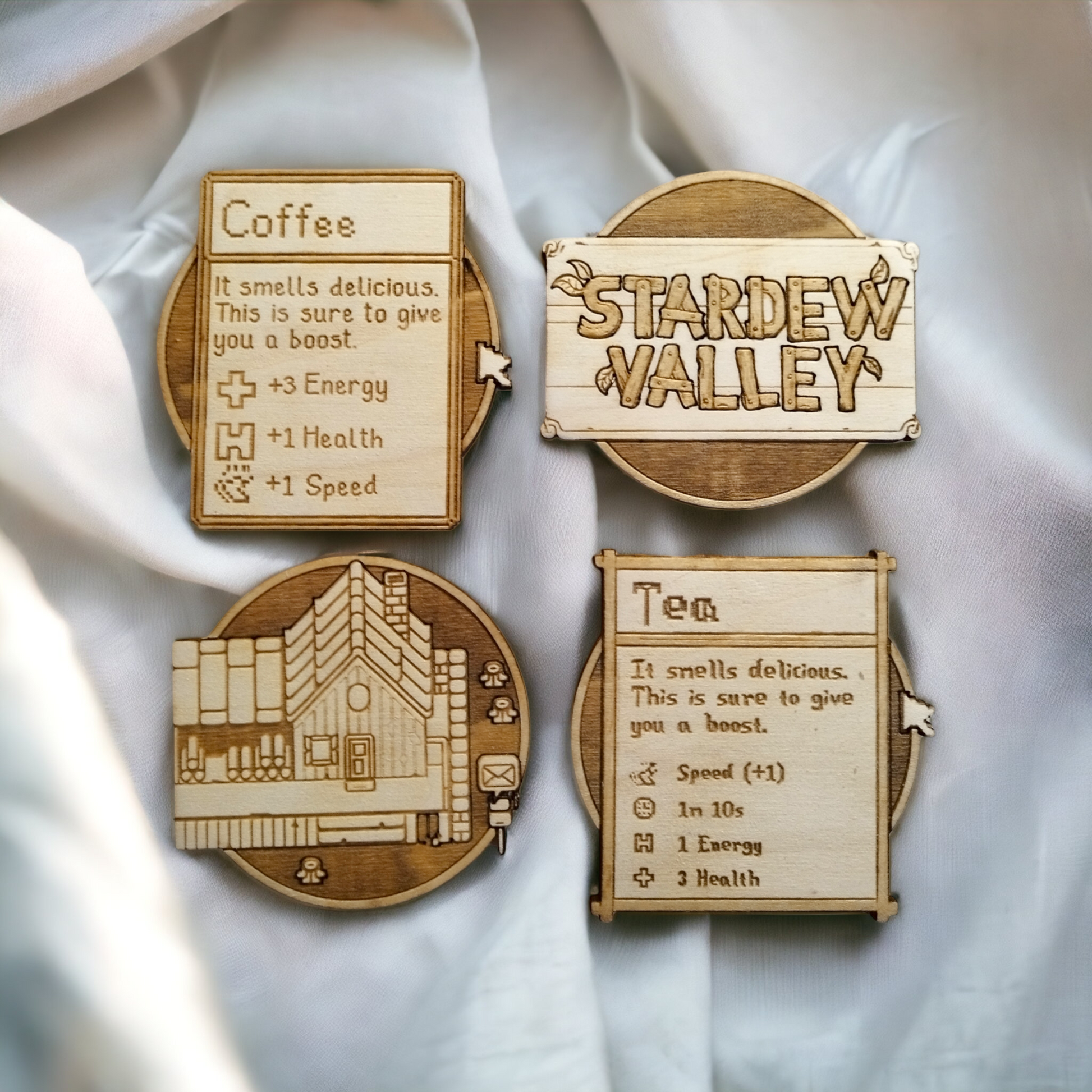 Set of 4 Stardew Valley Wooden Coasters - Handmade Gift - Housewarming - Wood Kitchenware