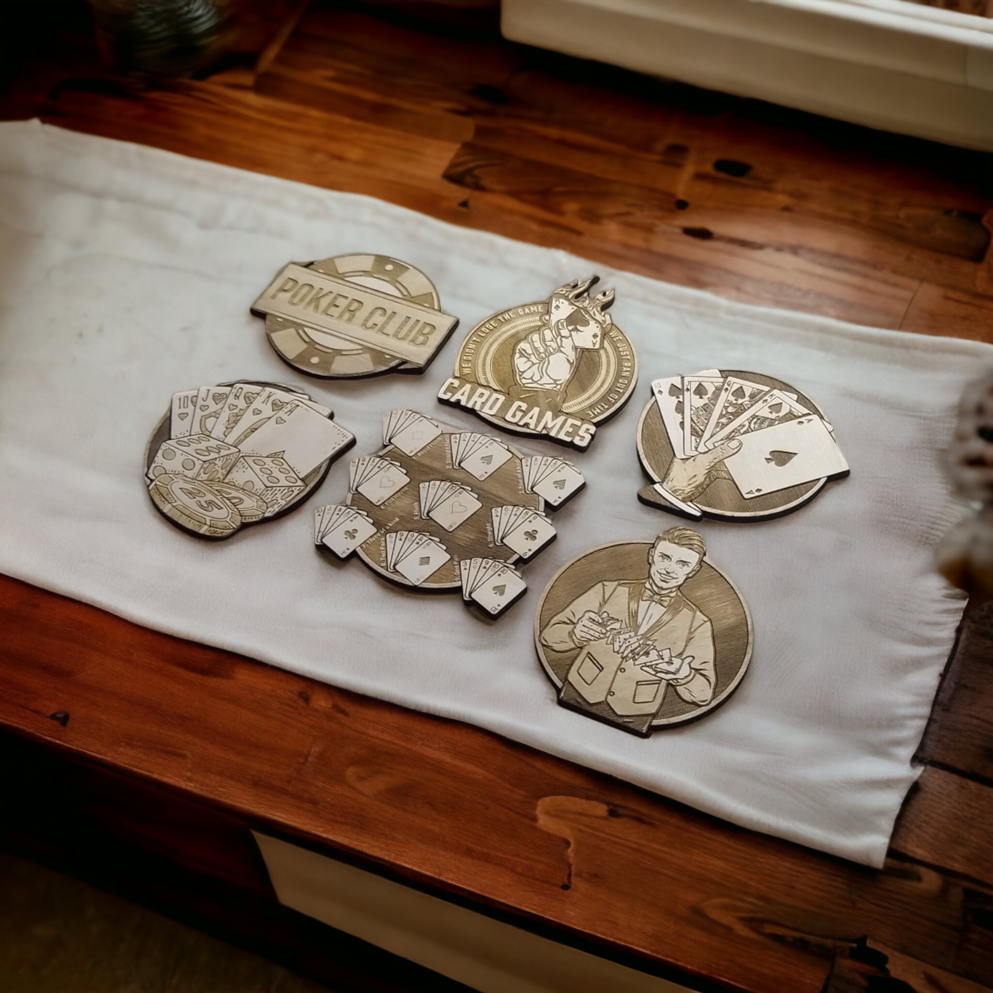 Set of 6 Game Cards Wooden Coasters - Handmade Gift - Wood Kitchenware