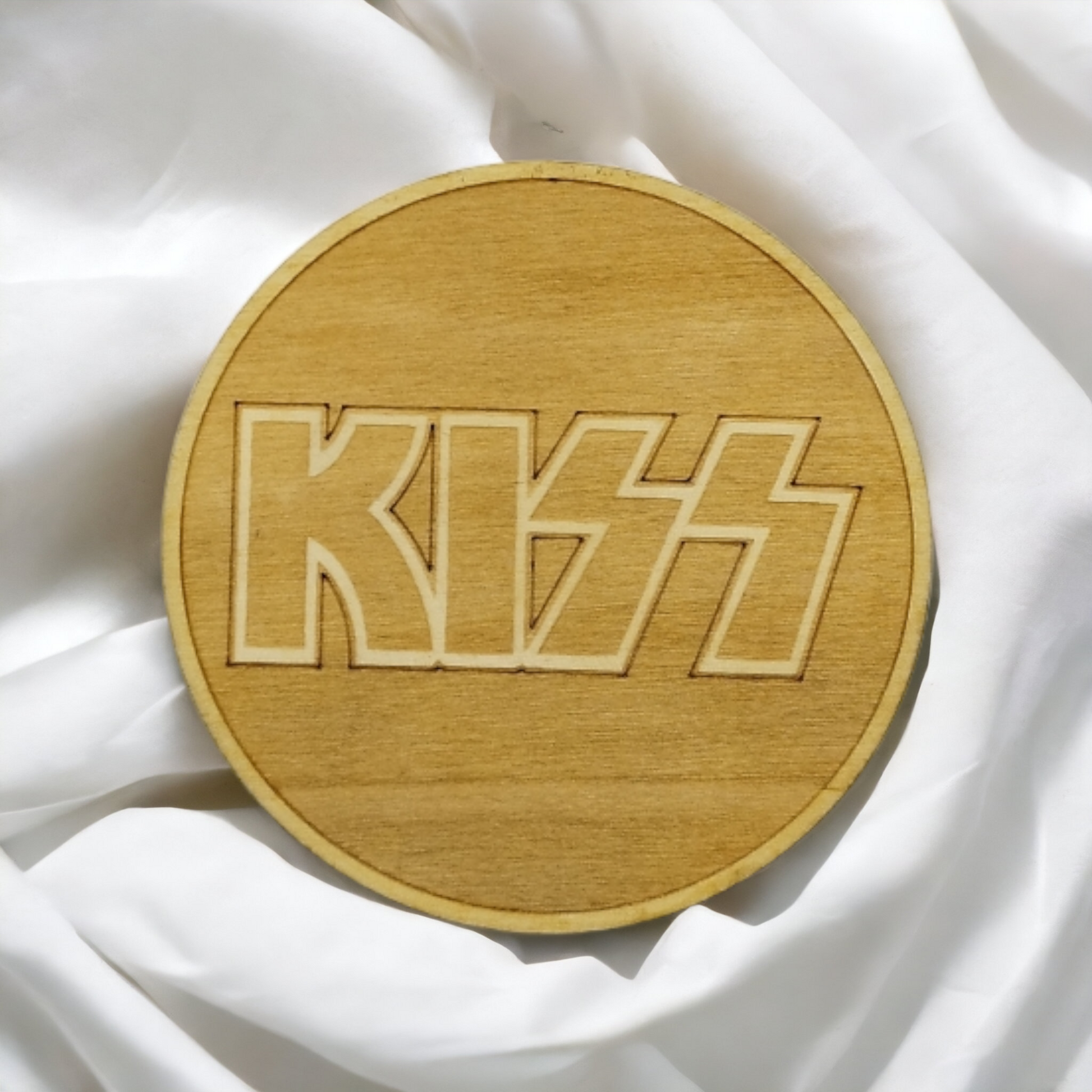 Set of 6 Kiss Wooden Coasters - Handmade Gift - Housewarming - Wood Kitchenware - Rock Band