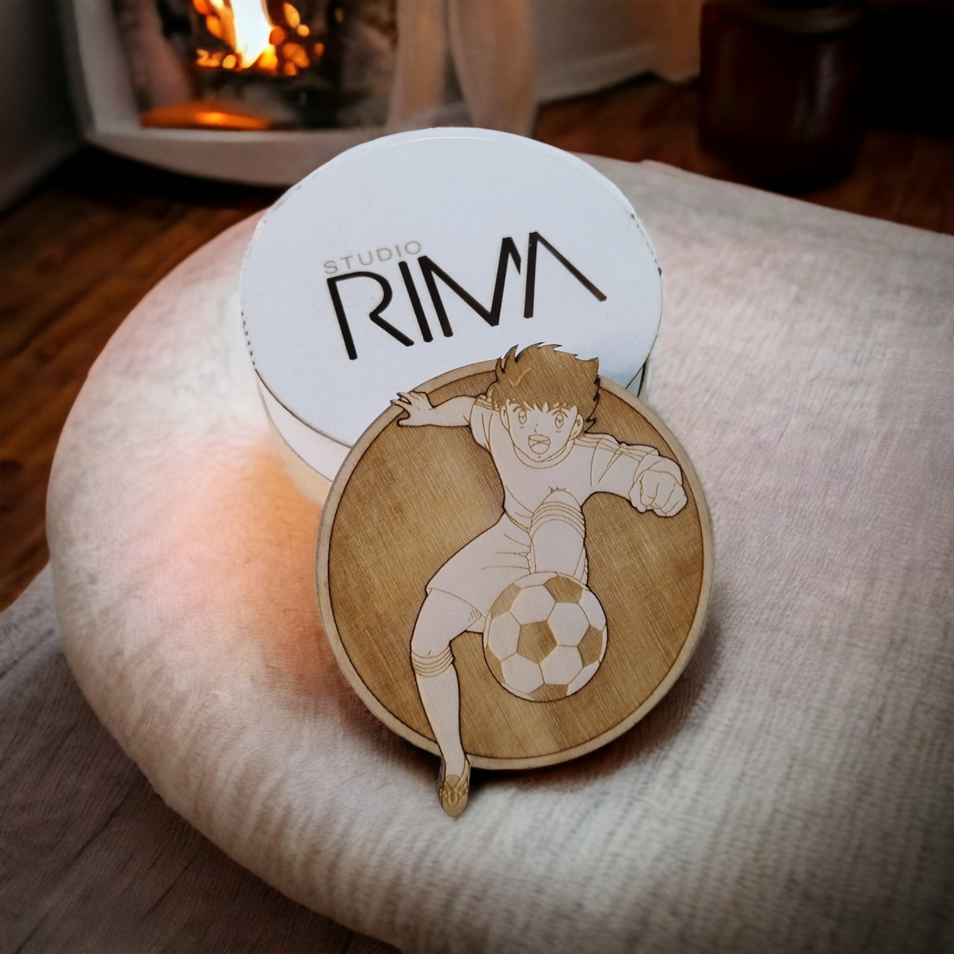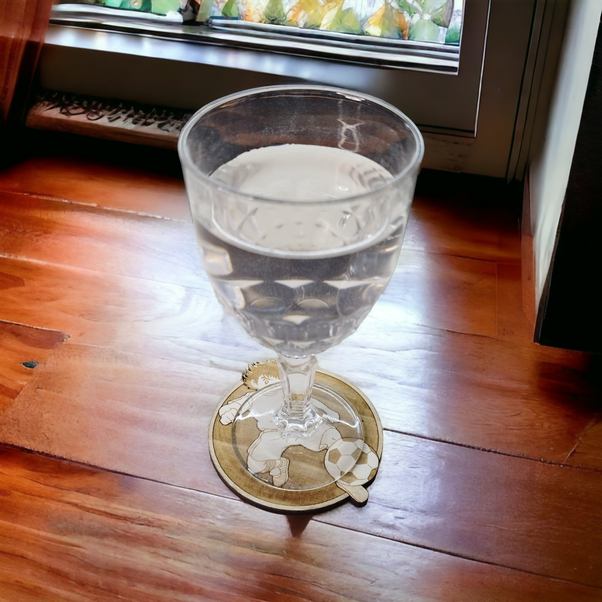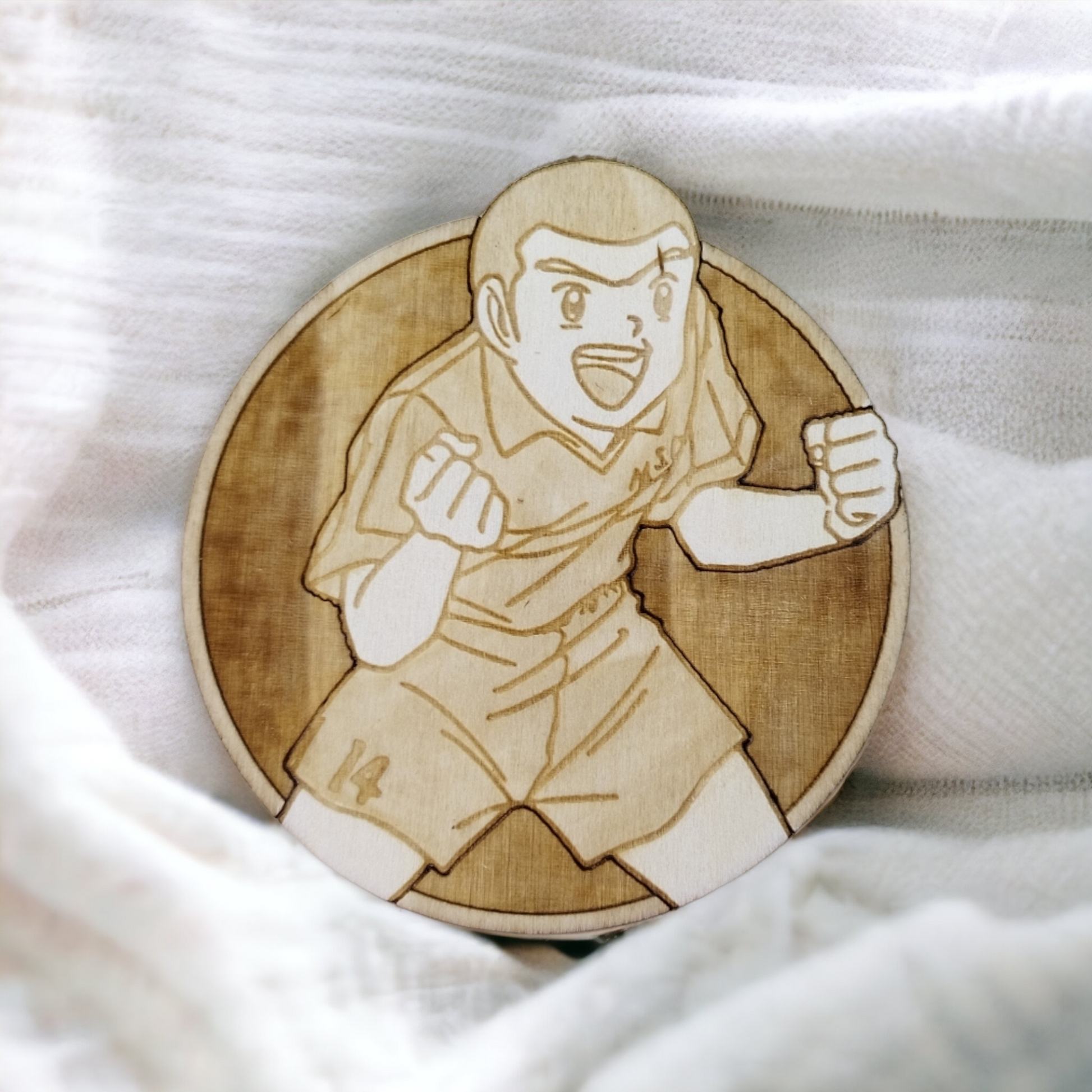 Set of 6 Captain Tsubasa Solid Wooden Coasters - Handmade Gift - Wood Kitchenware