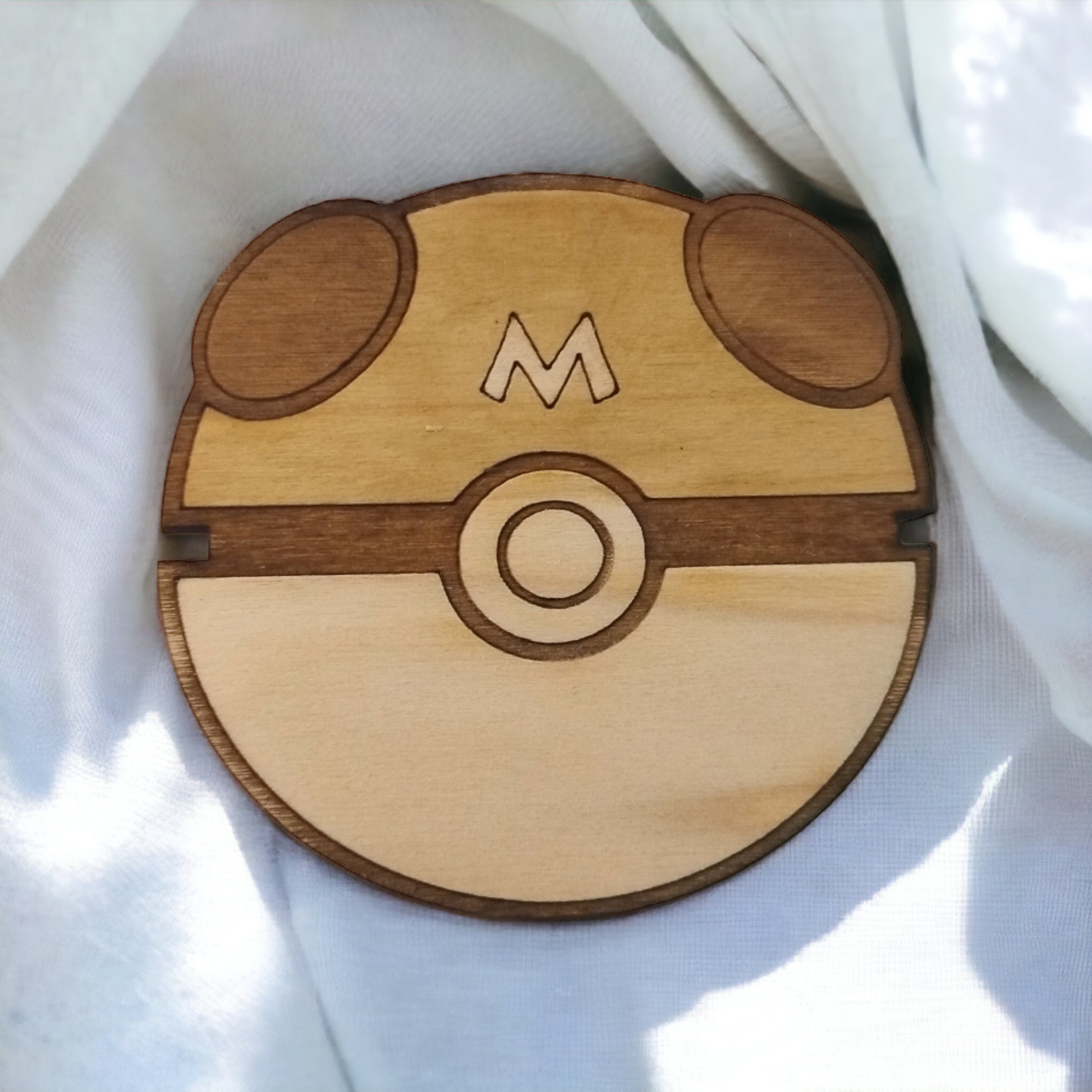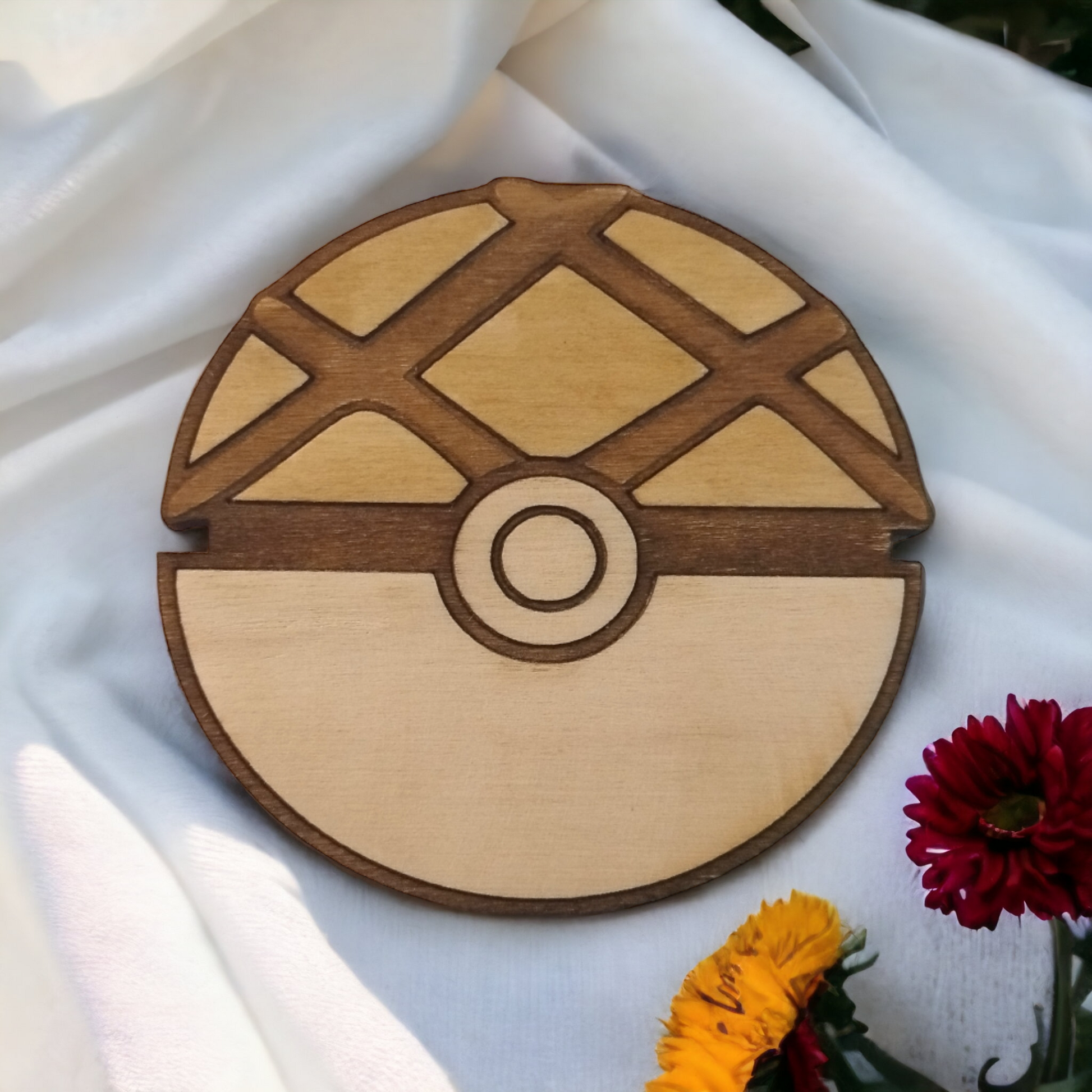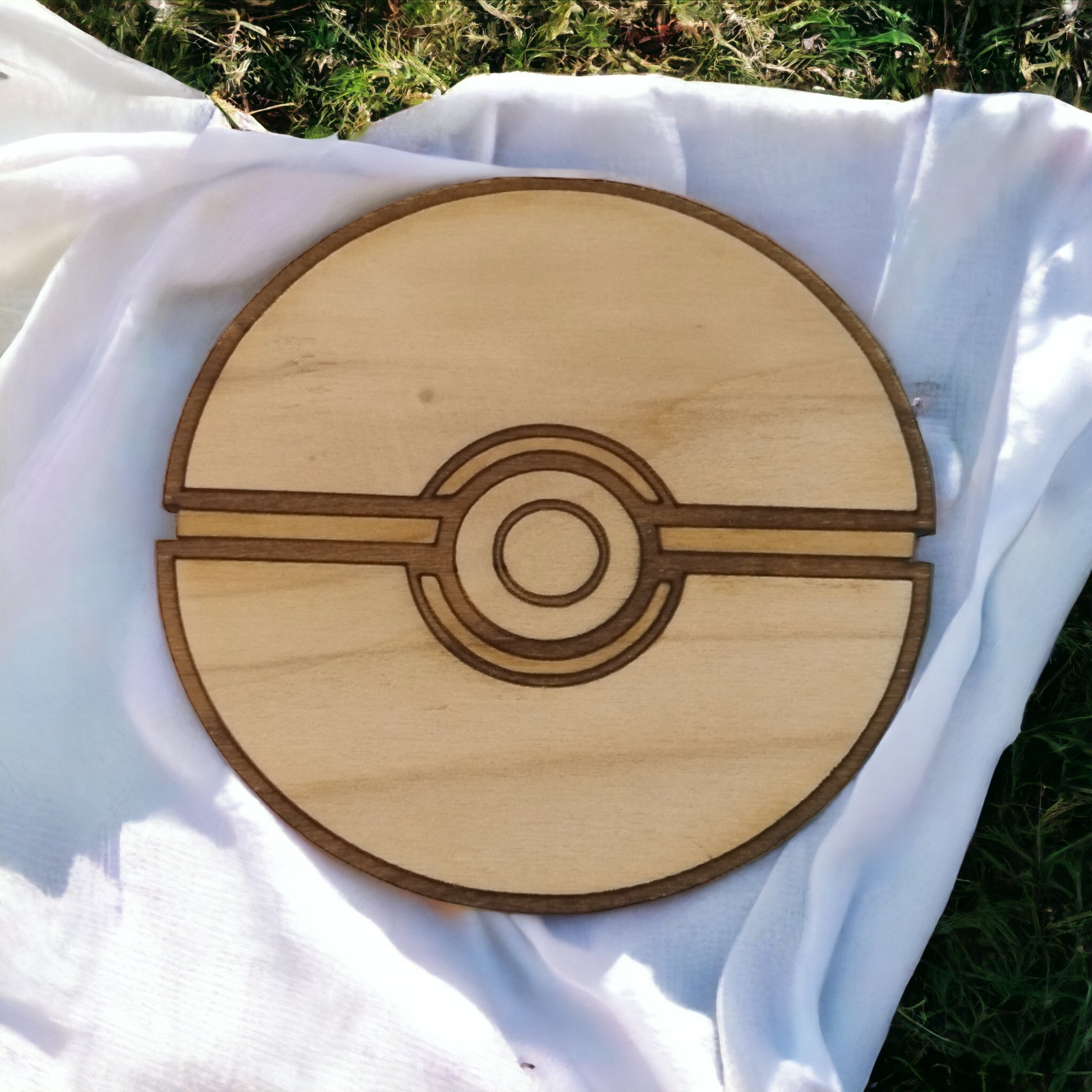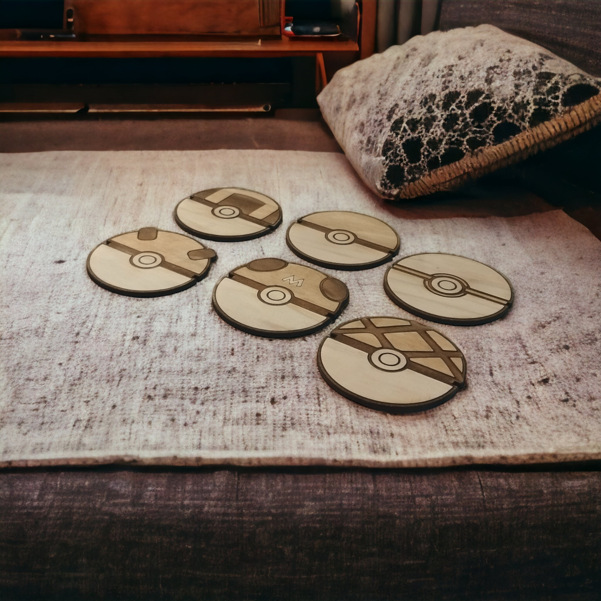 Set of 6 Pokeball Wooden Coasters - Handmade Gift - Housewarming - Wood Kitchenware