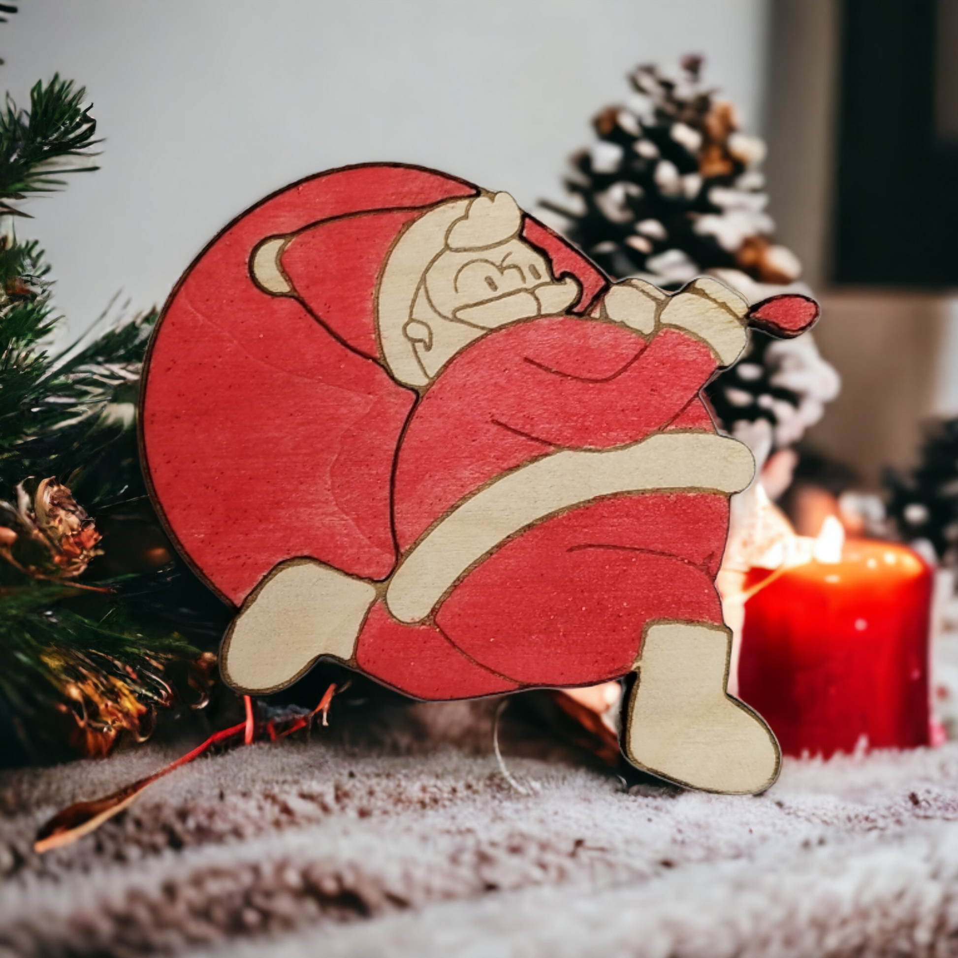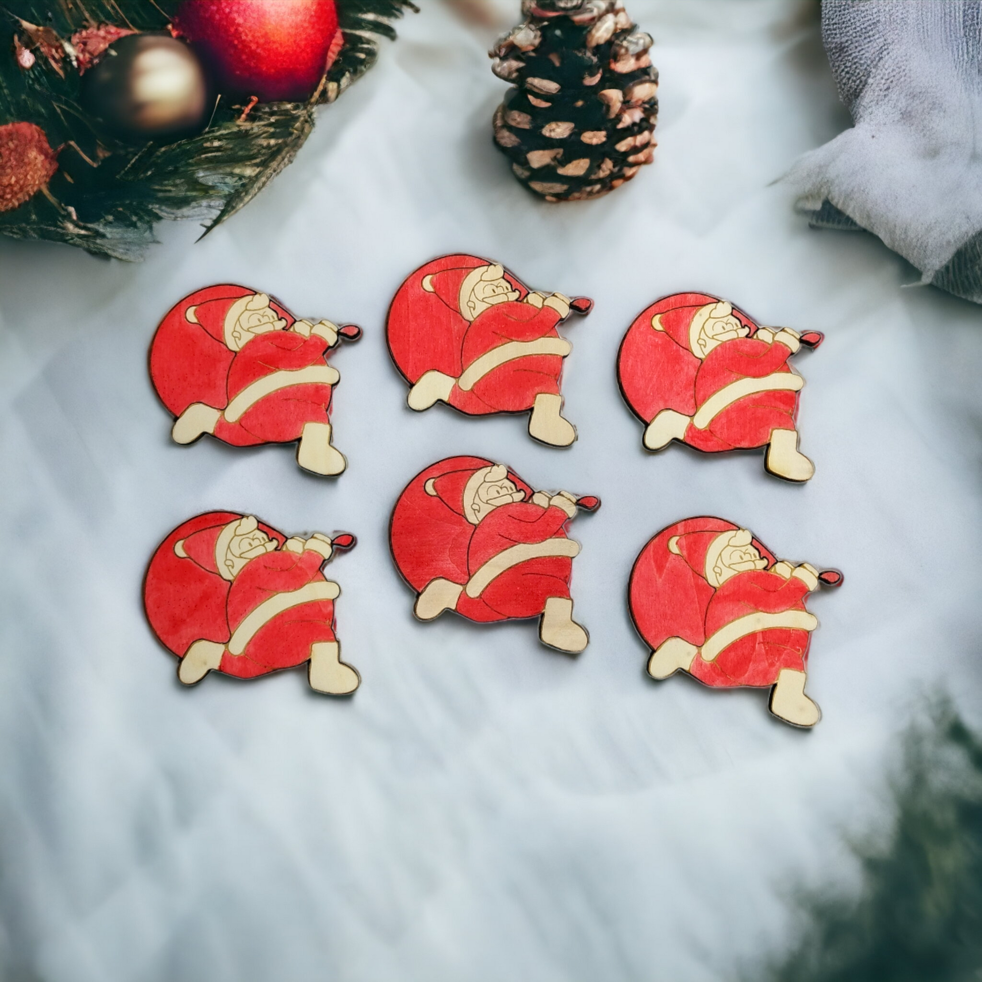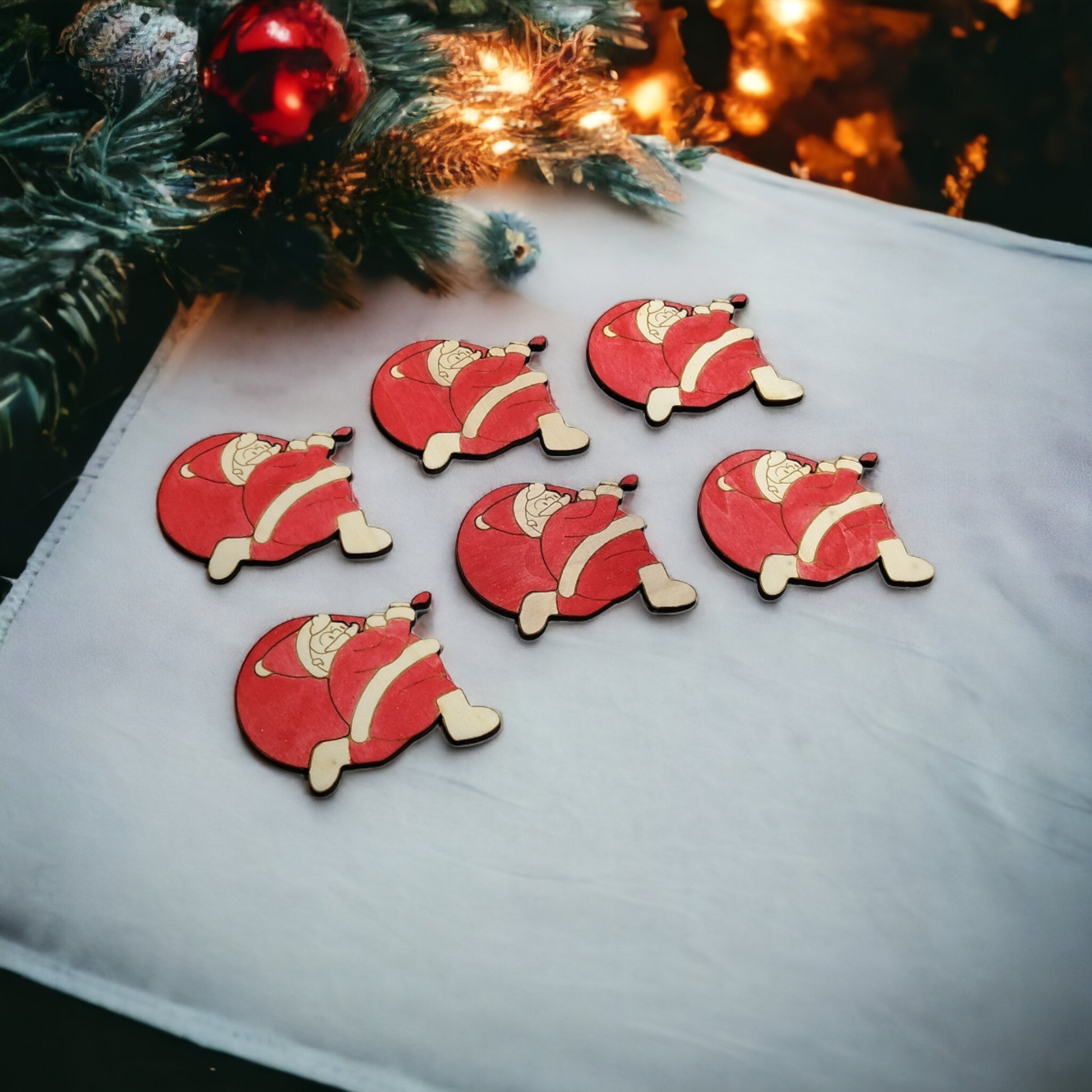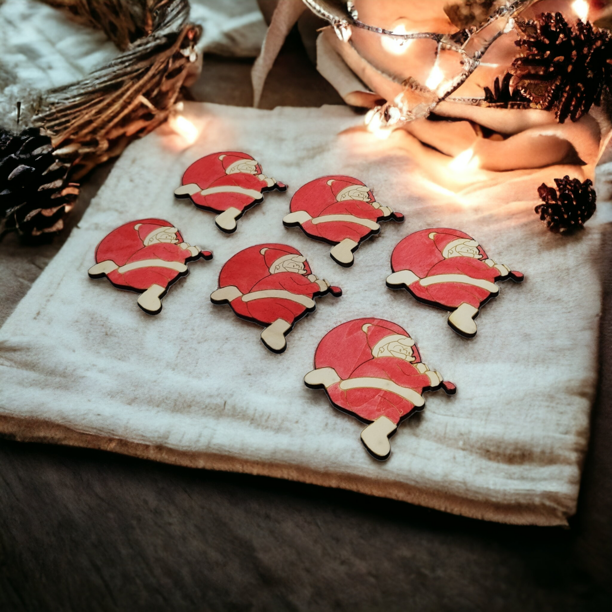 Set of 6 Santa Claus Wooden Coasters - Handmade Gift - Christmas Decor - Wood Kitchenware