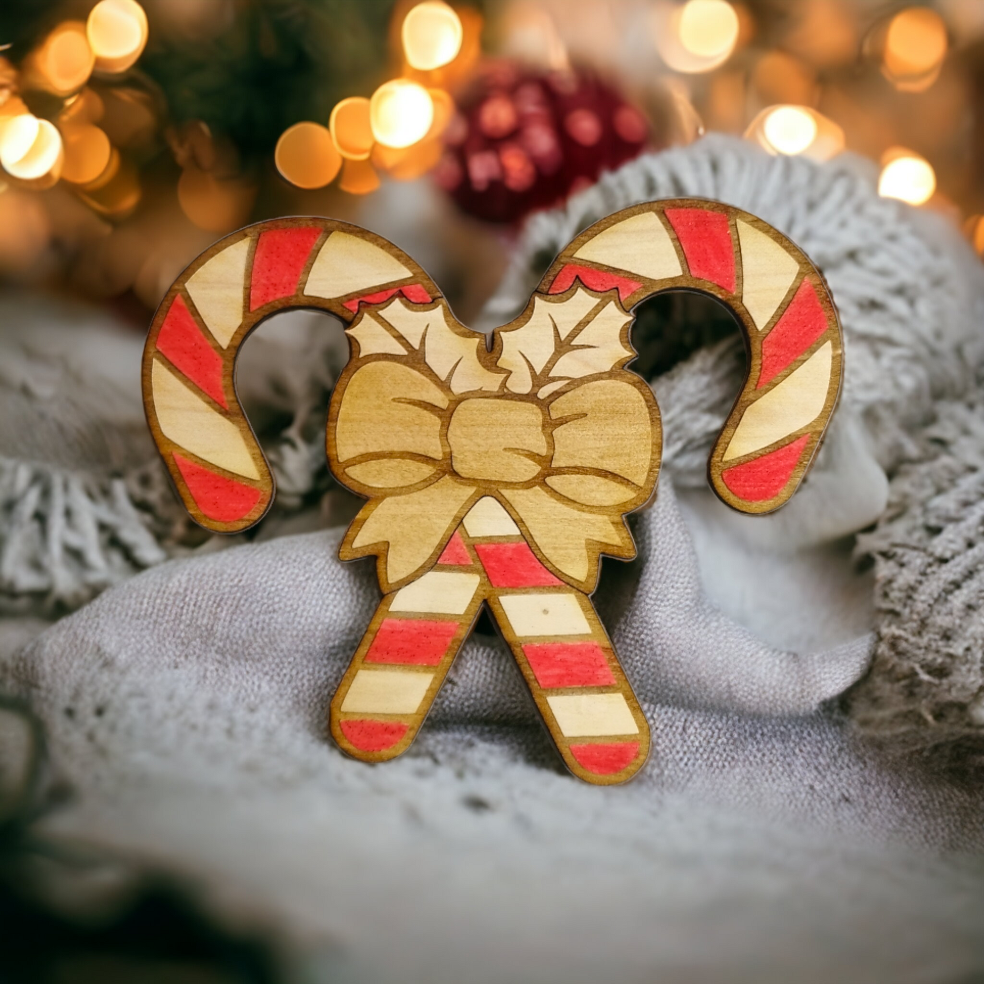 Double Candy Cane Wooden Christmas Decoration - Home Decor