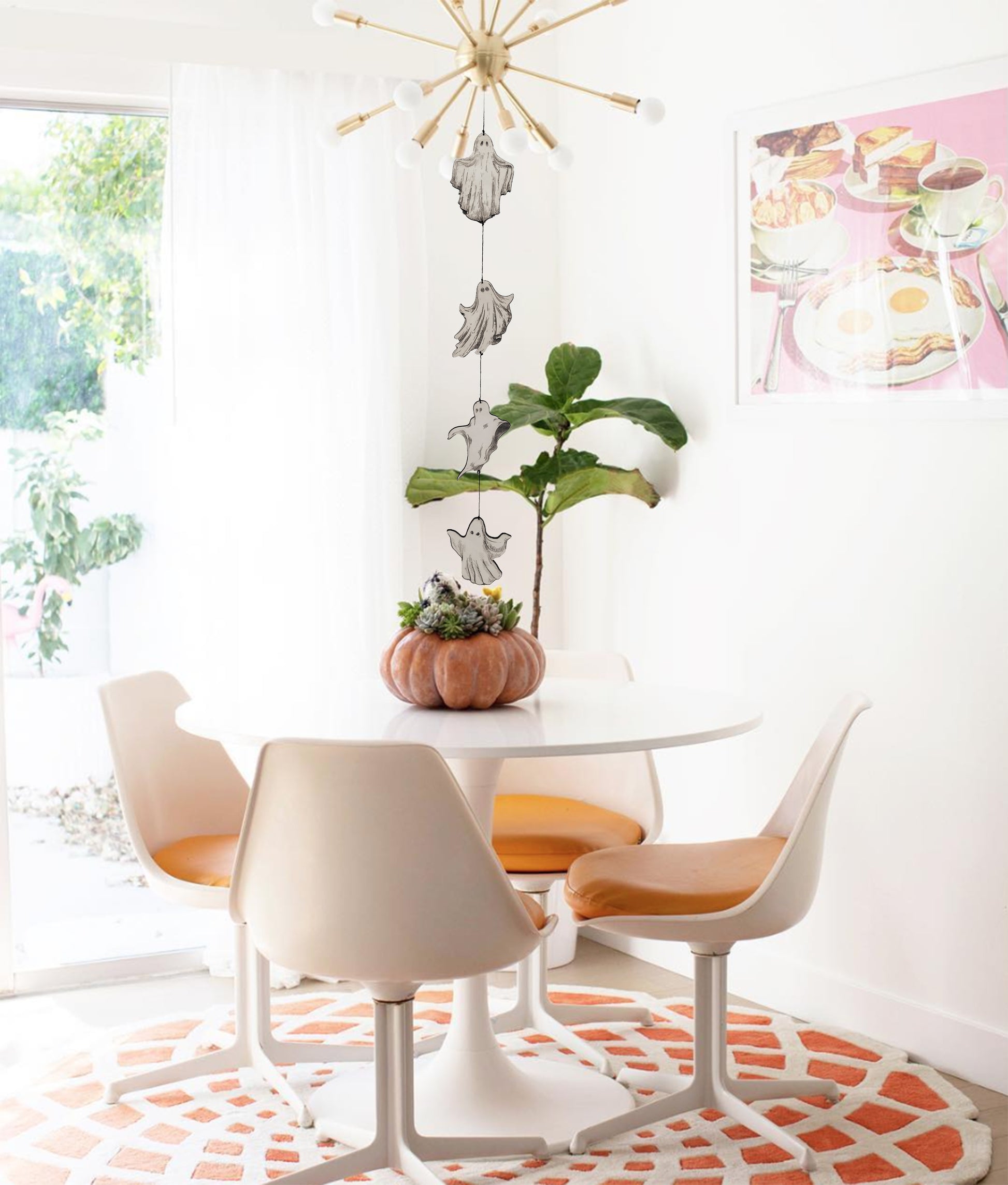 Exclusive Set of 4 ornaments made by Studio Rima with unique design. Each piece is selected and treated with great care during the production process, in which they are lasercut, sanded, painted and finished by hand. Transform your Halloween Party in a warm and original atmosphere with this Ghost Ornament.