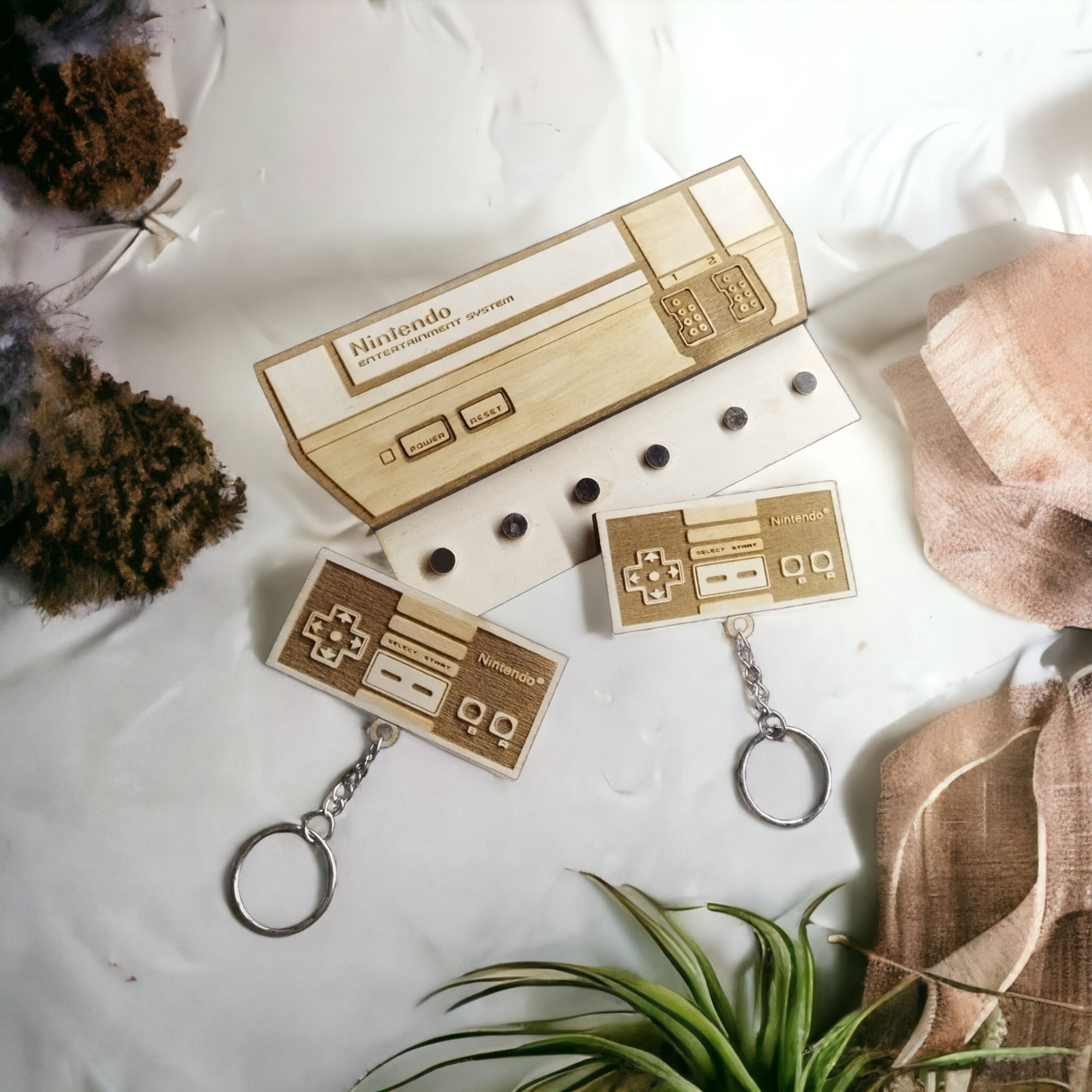 Capturing the essence of the iconic NES (Nintendo Entertainment System), this wall-mounted key holder features two magnetic keychains designed in the shape of the classic NES joysticks. Its nostalgic appeal will resonate with gamers and fans of vintage gaming.