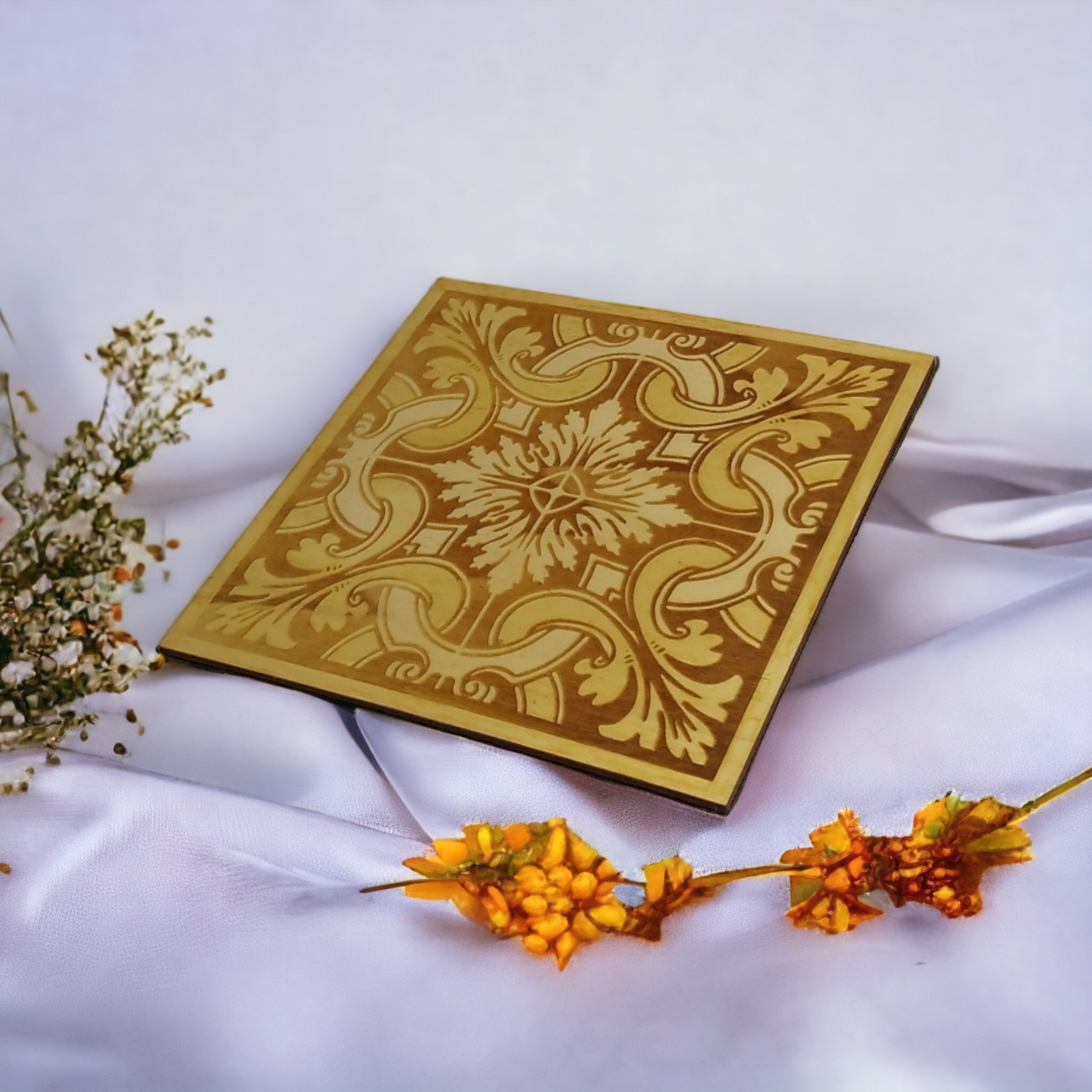 Adorable Pot Holder for all your table decorations! These beautiful all natural wood pot holder is made to order using a state of the art laser cutter, so you can be sure that the design will be exactly as shown. Never again worry about pots causing unsightly and often permanent damage to your favorite decor pieces and furniture. A set of laser-etched pot bases and coasters from Studio Rima will not only add a beautiful and unique touch to your home decor, they will quickly become a necessary addition to your home.