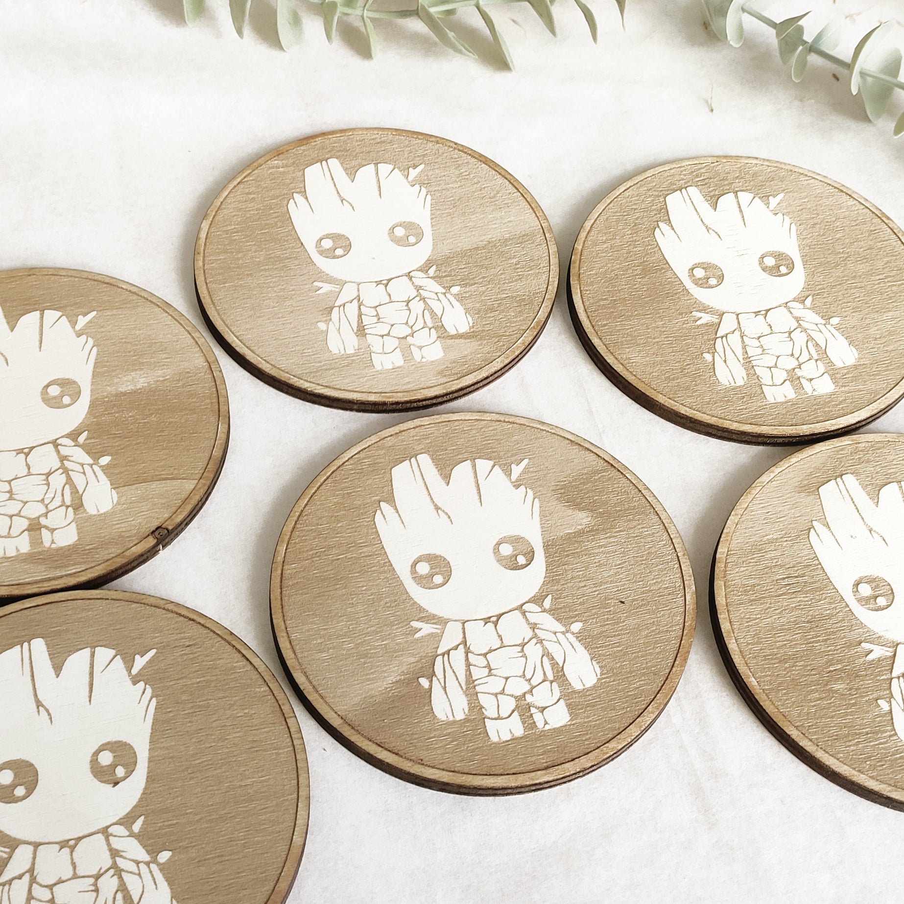 Set of 6 Baby Groot Wooden Coasters - Handmade Gift - Housewarming - Wood Kitchenware - Guardians of The Galaxy