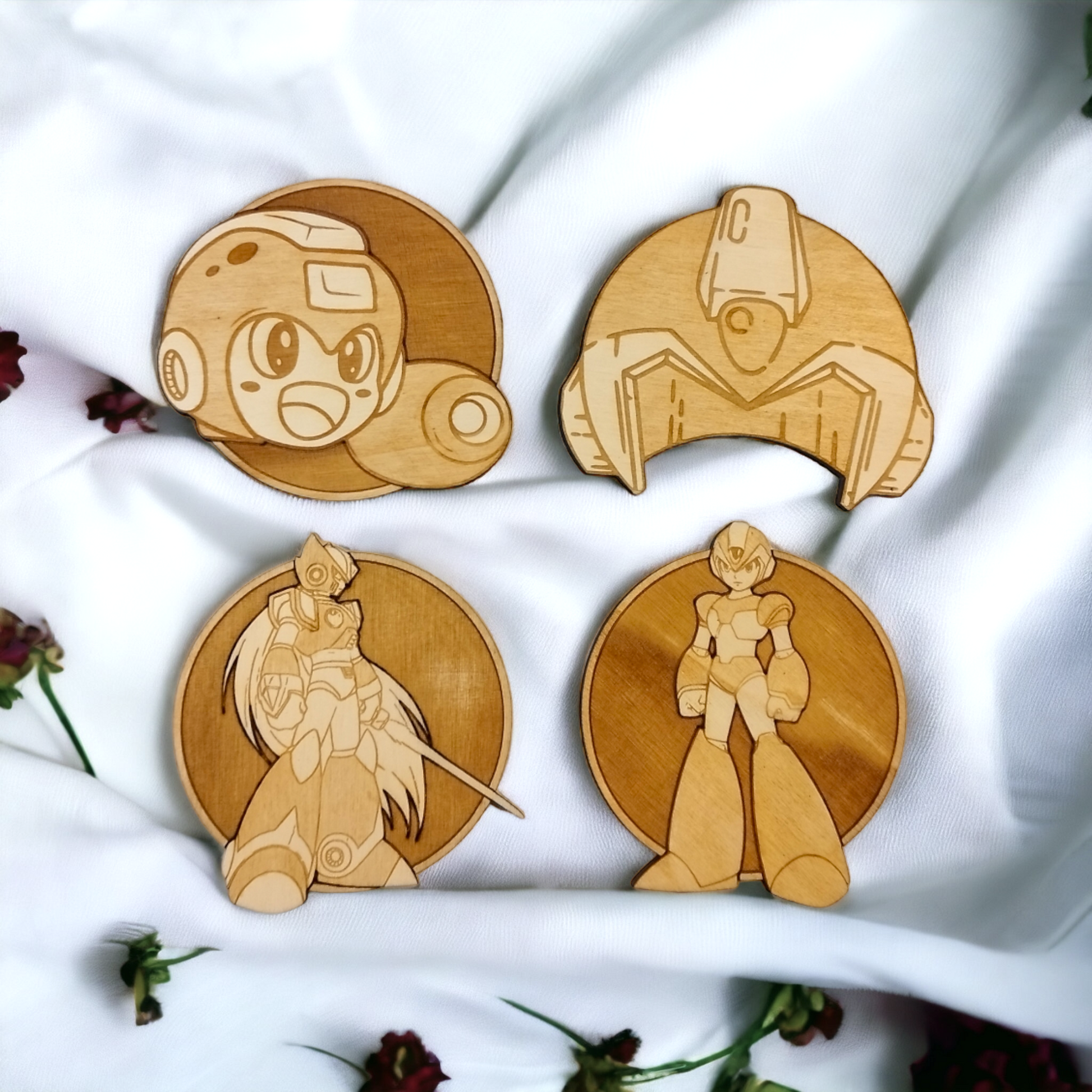 Set of 4 Megaman Wooden Coasters - Handmade Gift - Housewarming - Wood Kitchenware