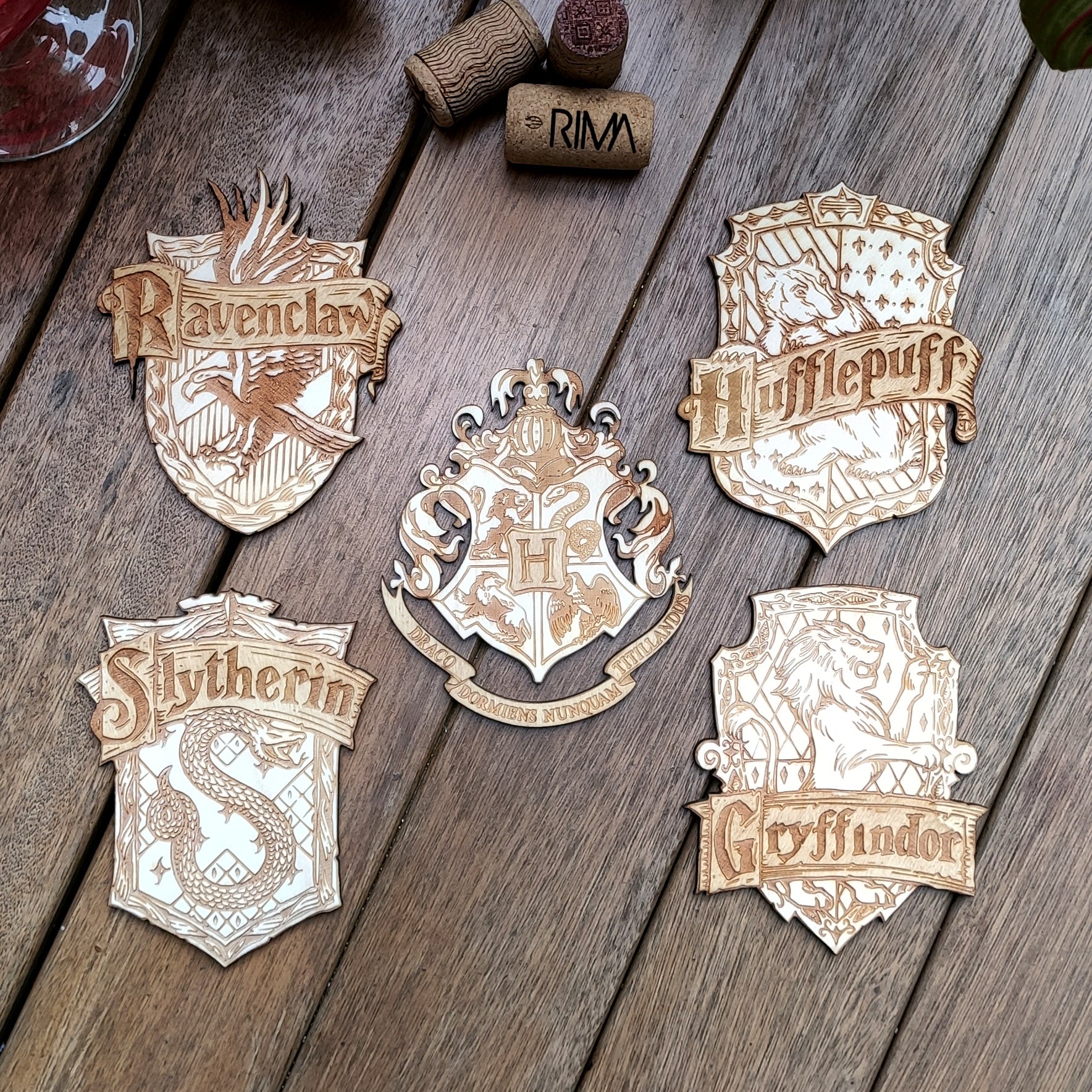 Set of 5 Harry Potter Wooden Coasters - Handmade Gift - Housewarming - Wood Kitchenware - Hogwarts Schools