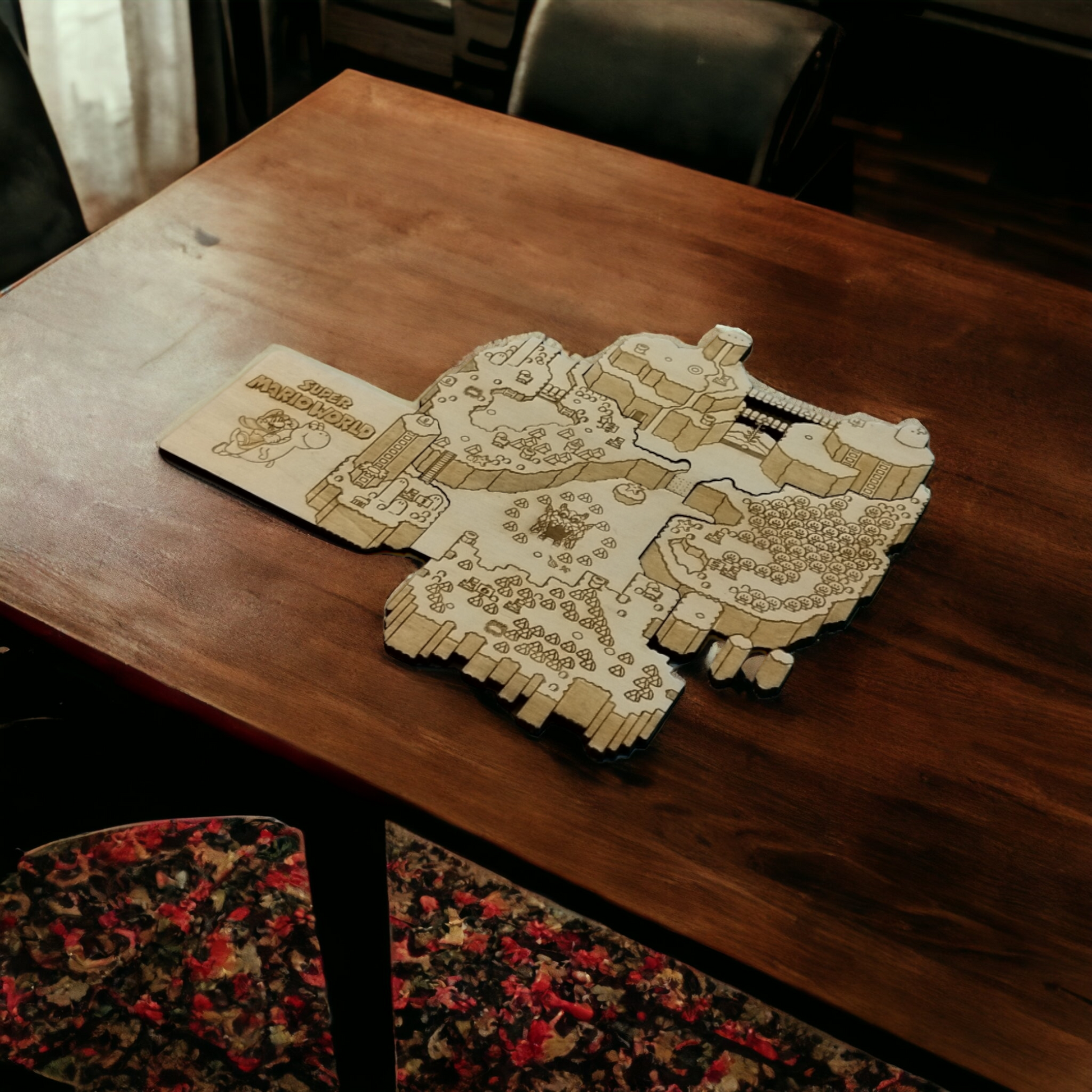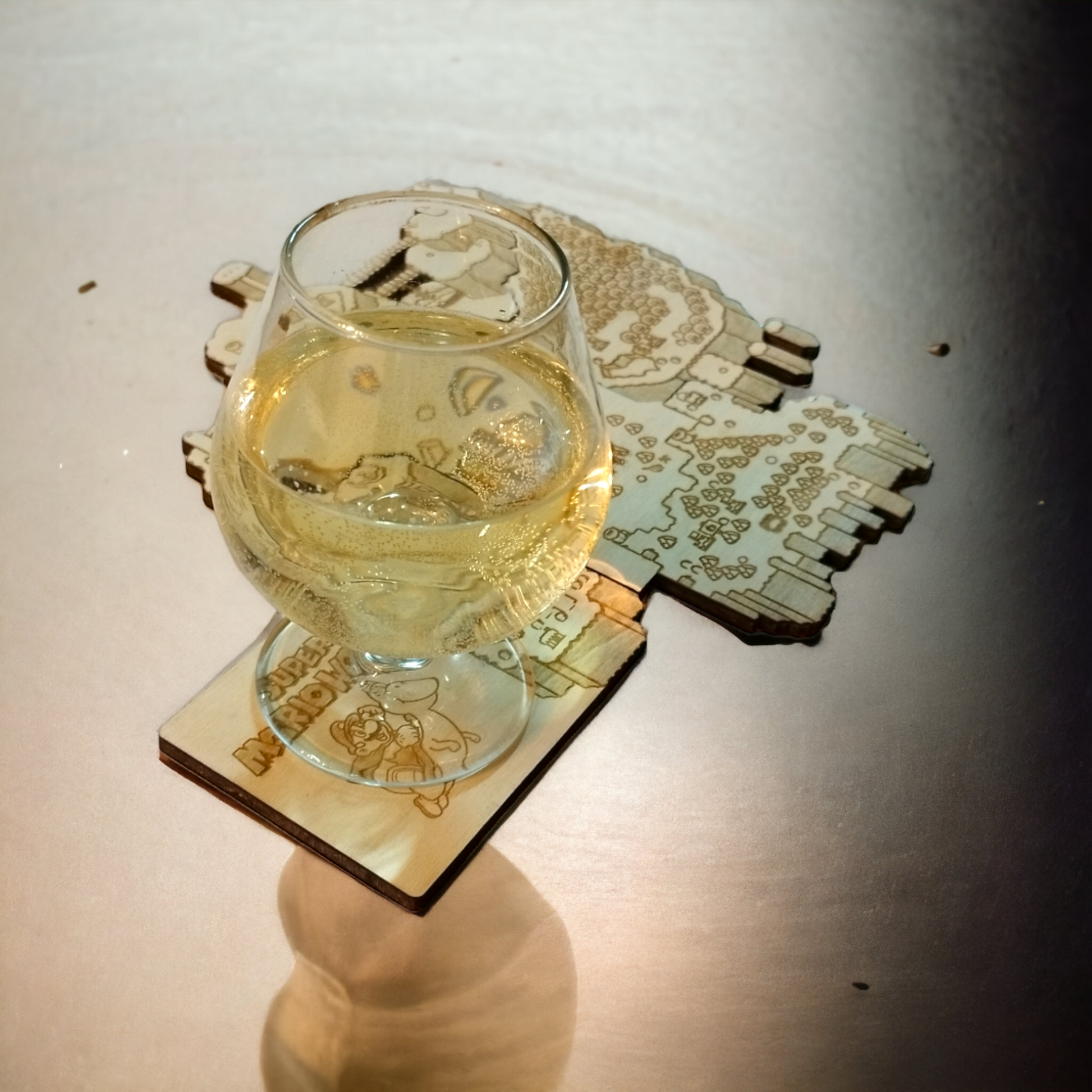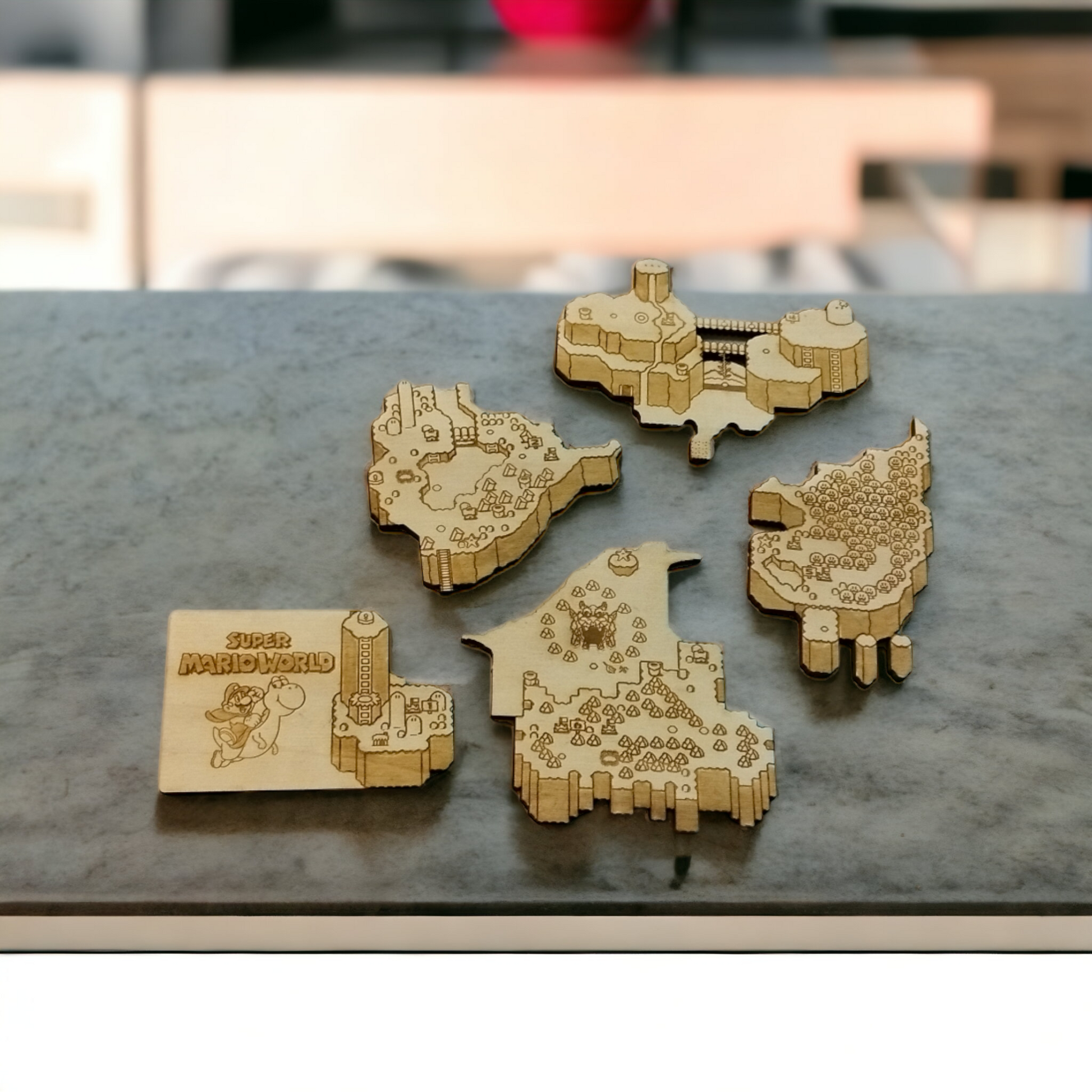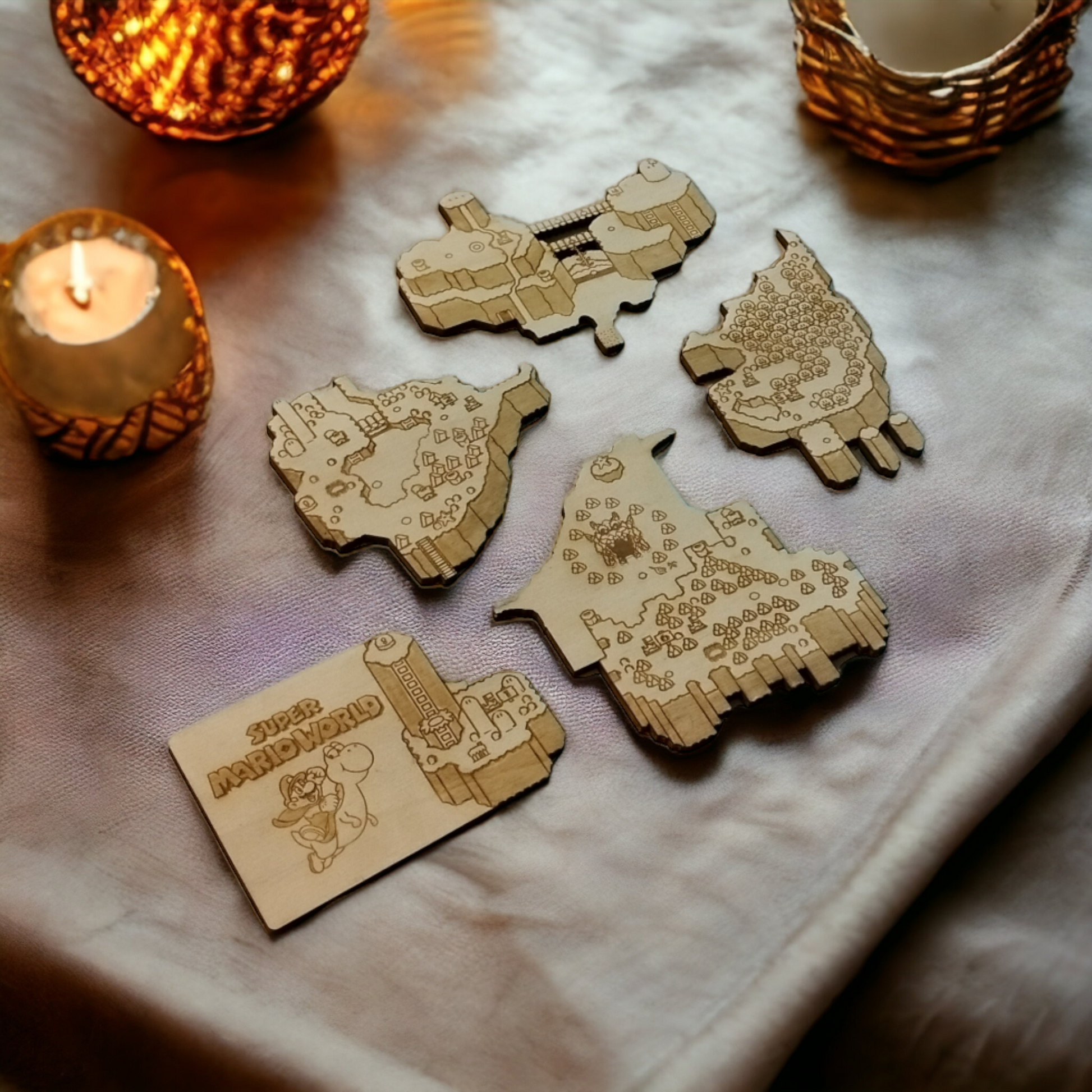 Set of 5 Super Mario World Map Wooden Coasters - Handmade Gift - Housewarming - Wood Kitchenware - Super Mario