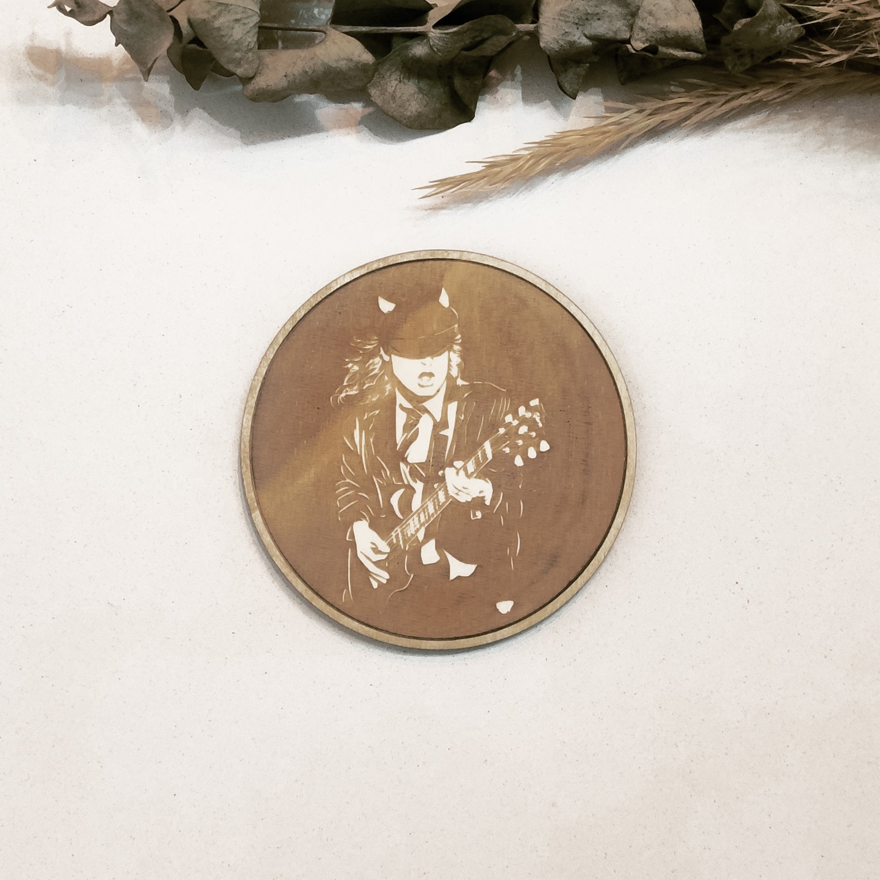 Set of 6 ACDC Wooden Coasters - Handmade Gift - Housewarming - Wood Kitchenware - Rock Band