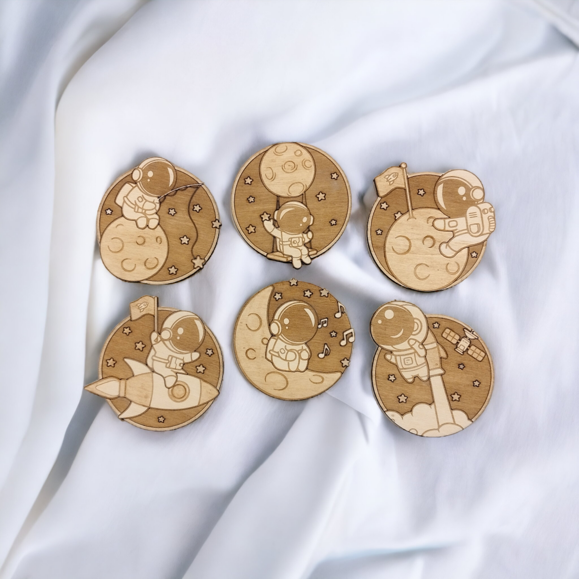 Set of 6 Astronauts Wooden Coasters - Handmade Gift - Housewarming - Wood Kitchenware