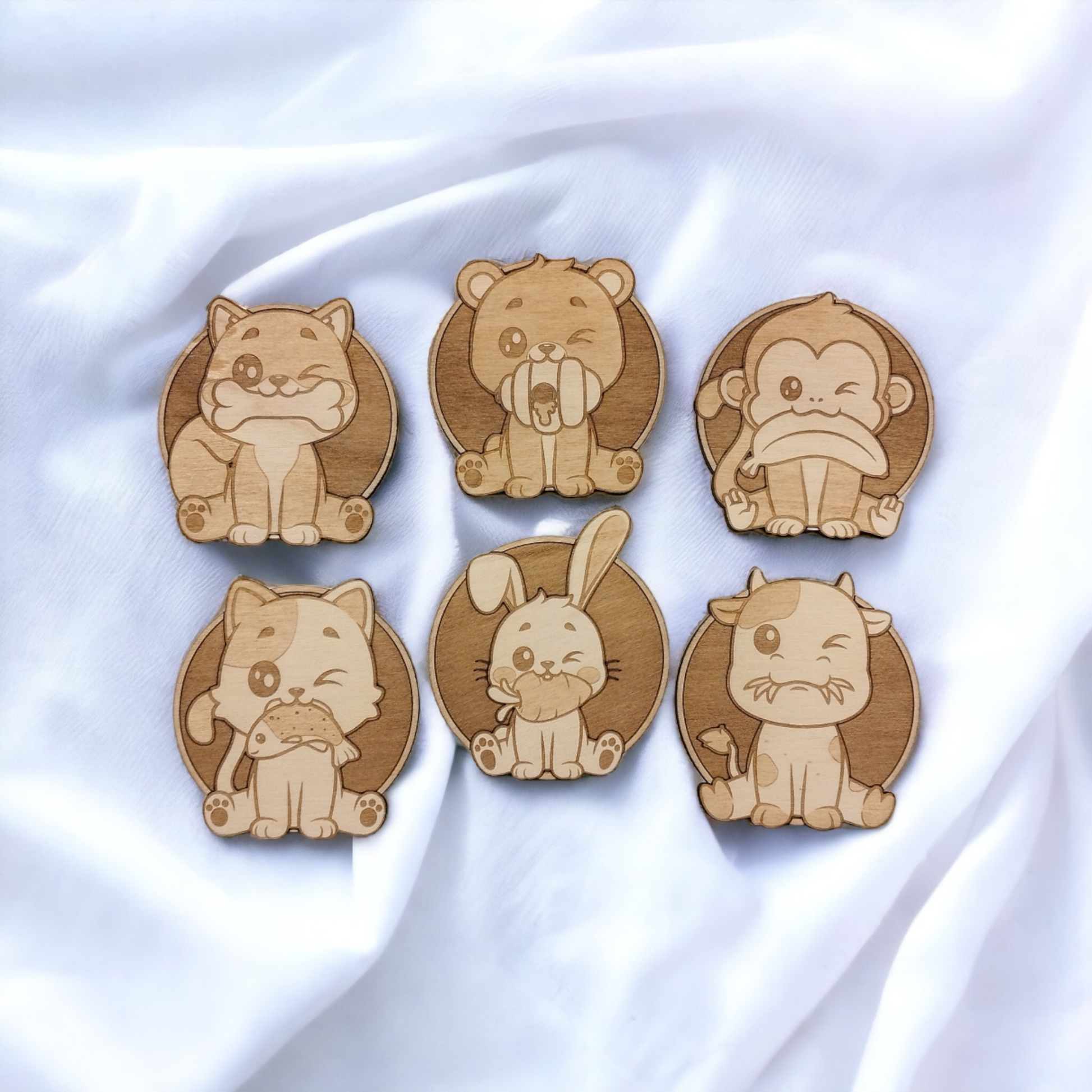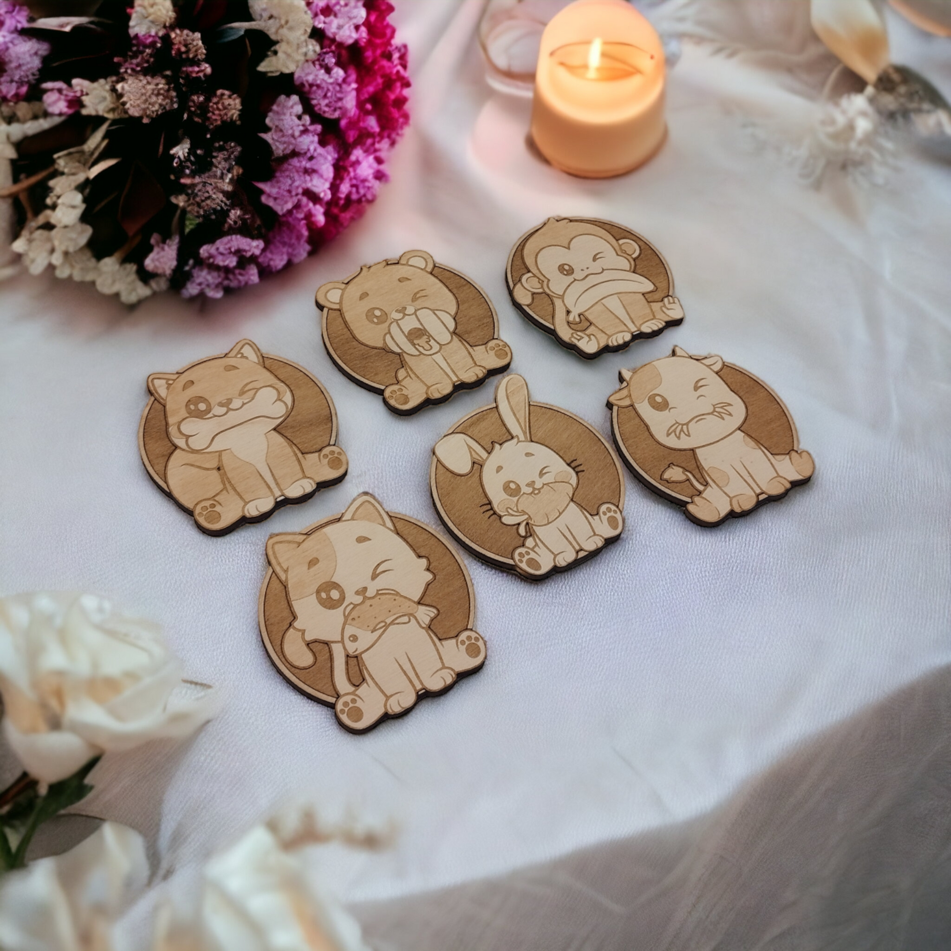 Set of 6 Cute Animals Collection Wooden Coasters - Handmade Gift - Housewarming - Wood Kitchenware