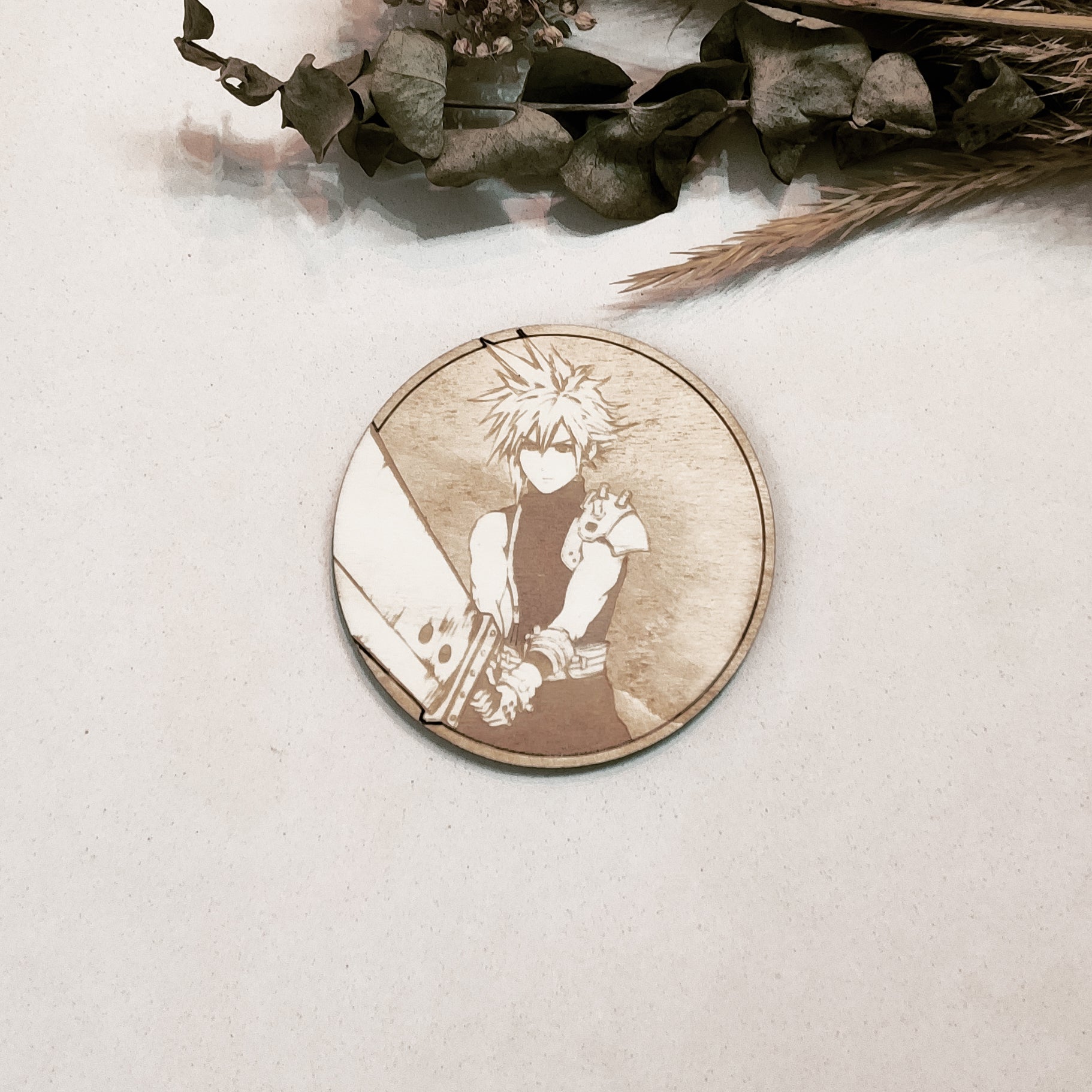 Set of 6 Final Fantasy VII Wooden Coasters - Handmade Gift - Housewarming - Wood Kitchenware