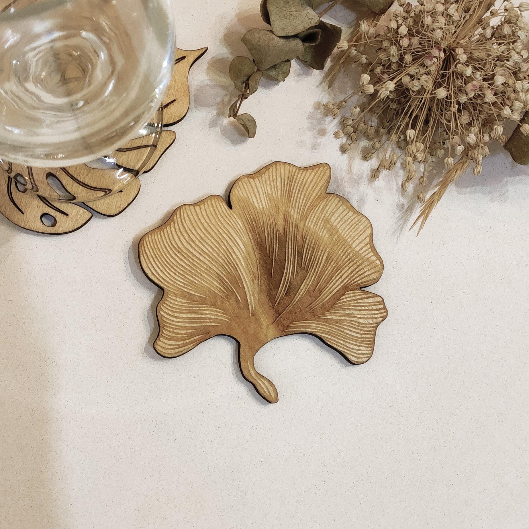 Set of 6 Leaves Wooden Coasters - Handmade Gift - Housewarming - Wood Kitchenware - Nature