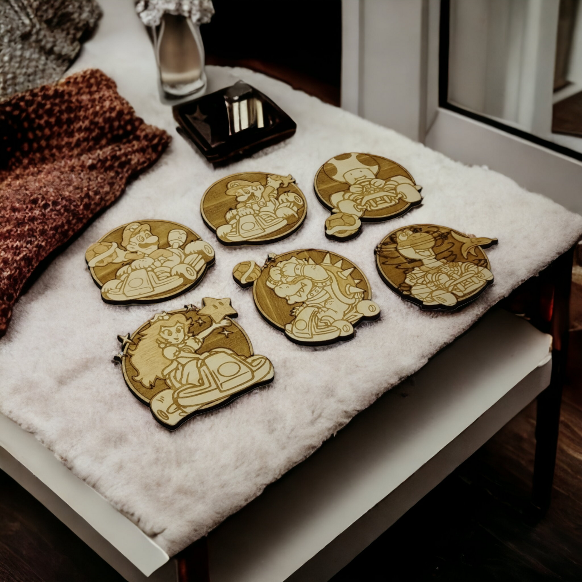 Set of 6 Mario Kart Wooden Coasters - Handmade Gift - Housewarming - Wood Kitchenware - Guardians of The Galaxy