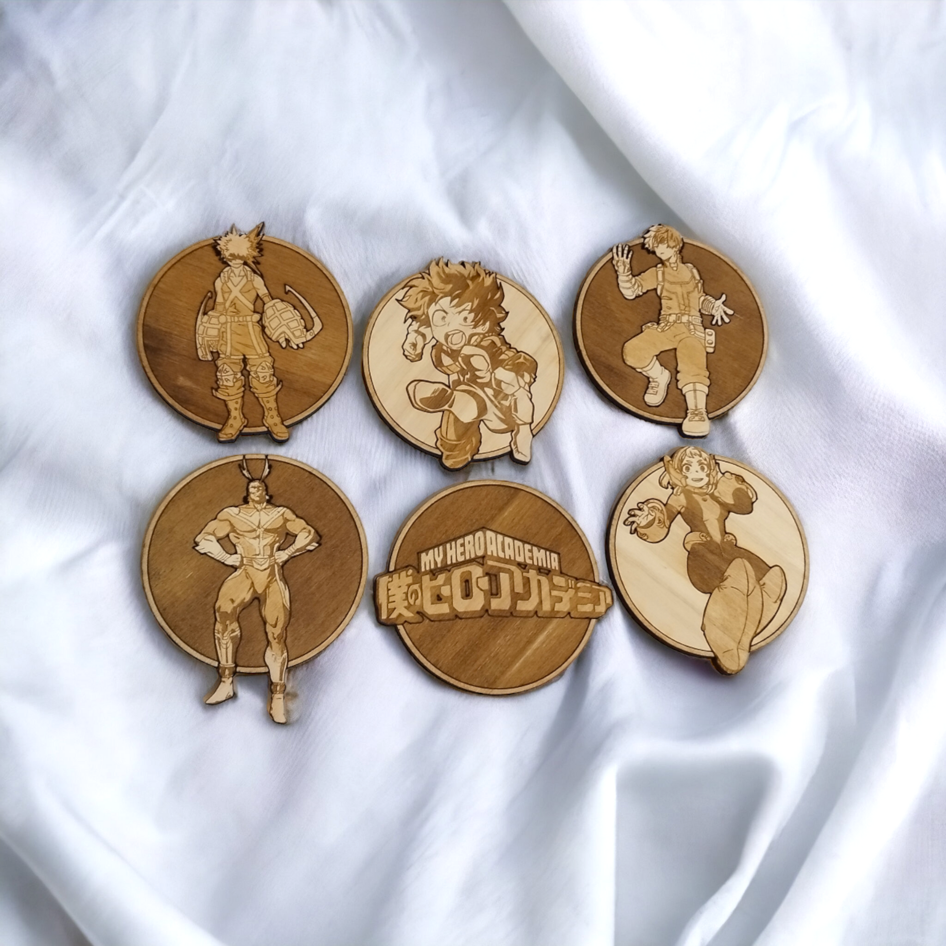 Set of 6 My Hero Academy Wooden Coasters - Handmade Gift - Housewarming - Wood Kitchenware