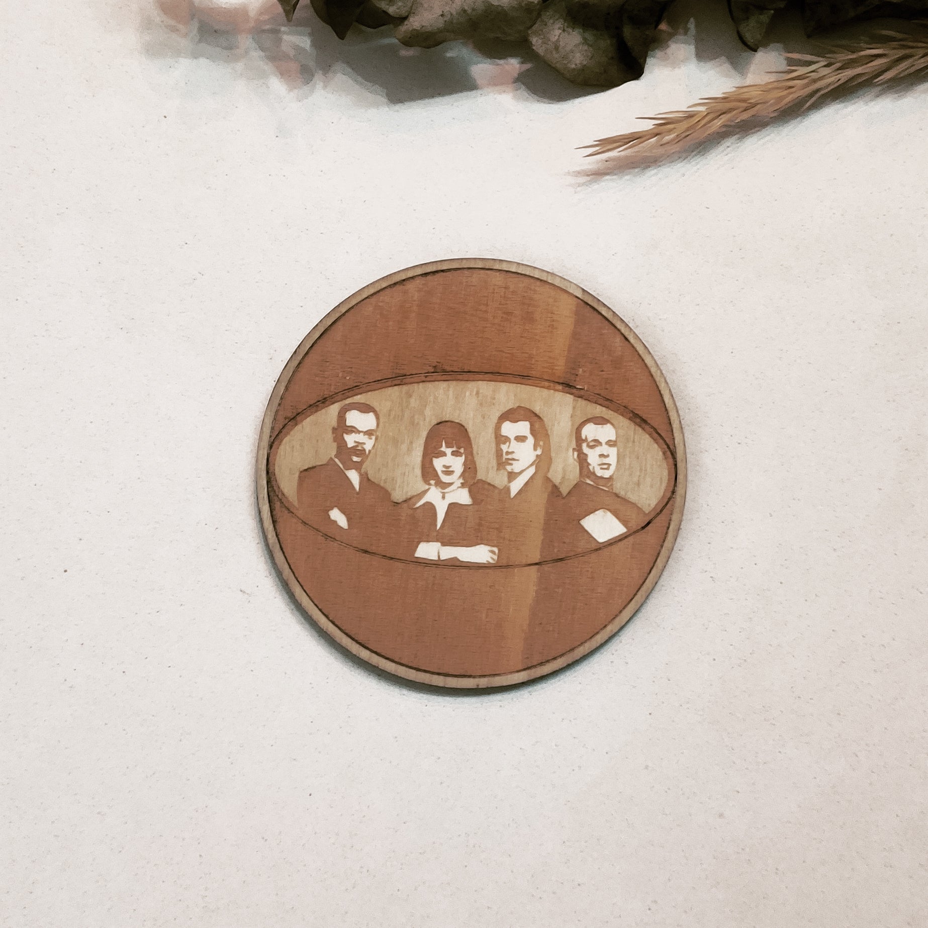 Set of 6 Pulp Fiction Wooden Coasters - Handmade Gift - Housewarming - Wood Kitchenware