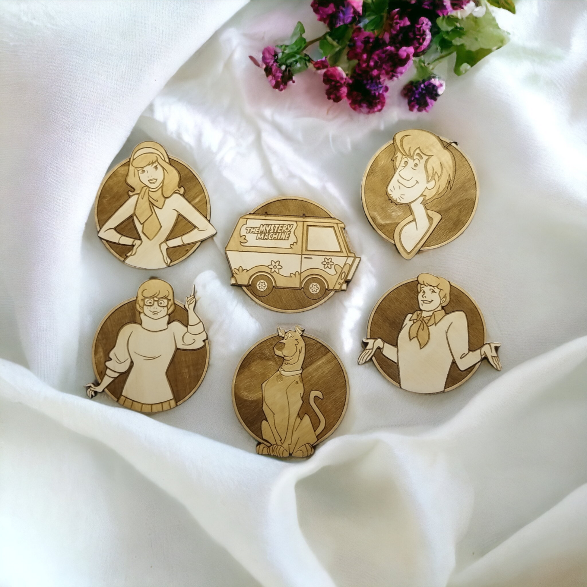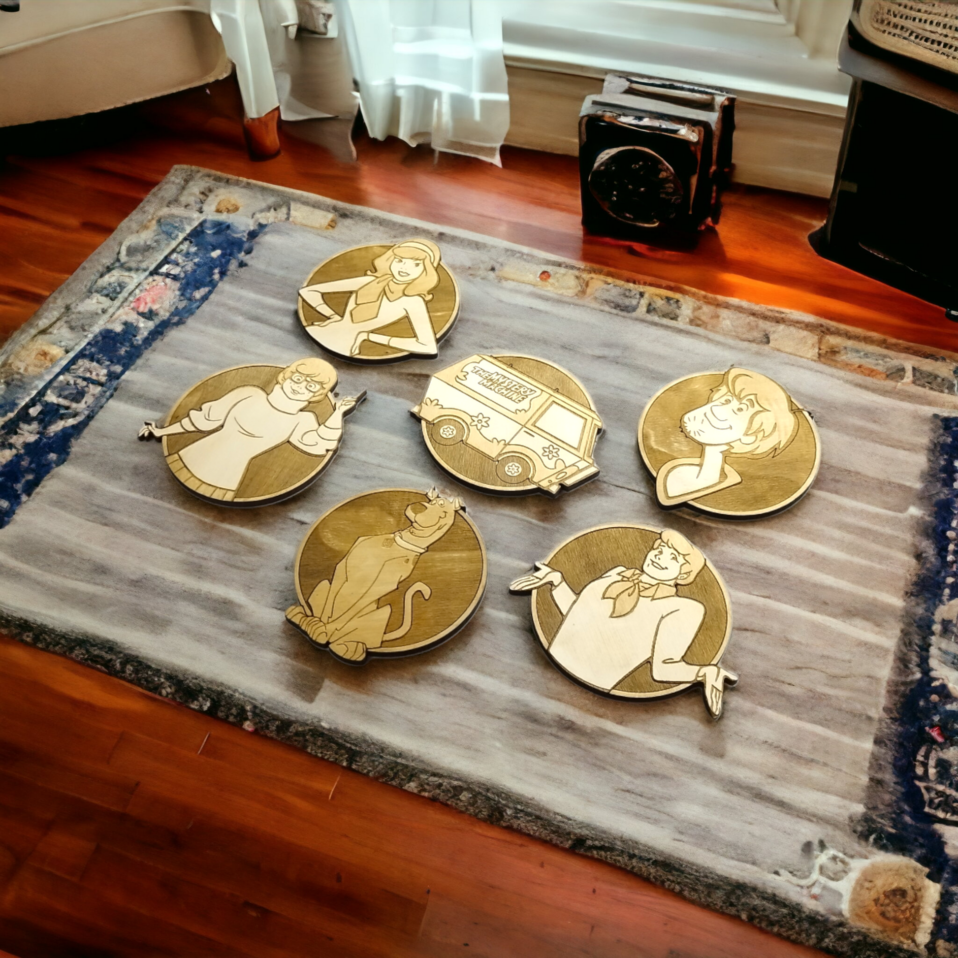 Set of 6 Scooby Doo Wooden Coasters - Handmade Gift - Housewarming - Wood Kitchenware