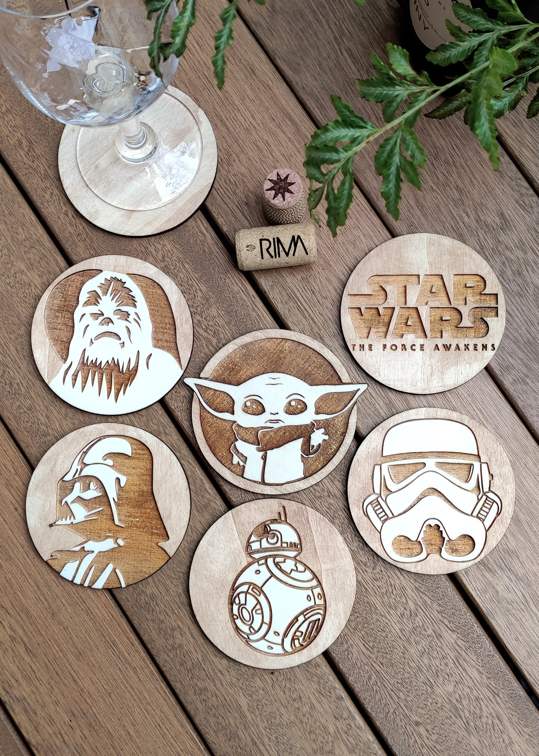Set of 6 Star Wars Wooden Coasters - Handmade Gift - Housewarming - Wood Kitchenware - Baby Yoda